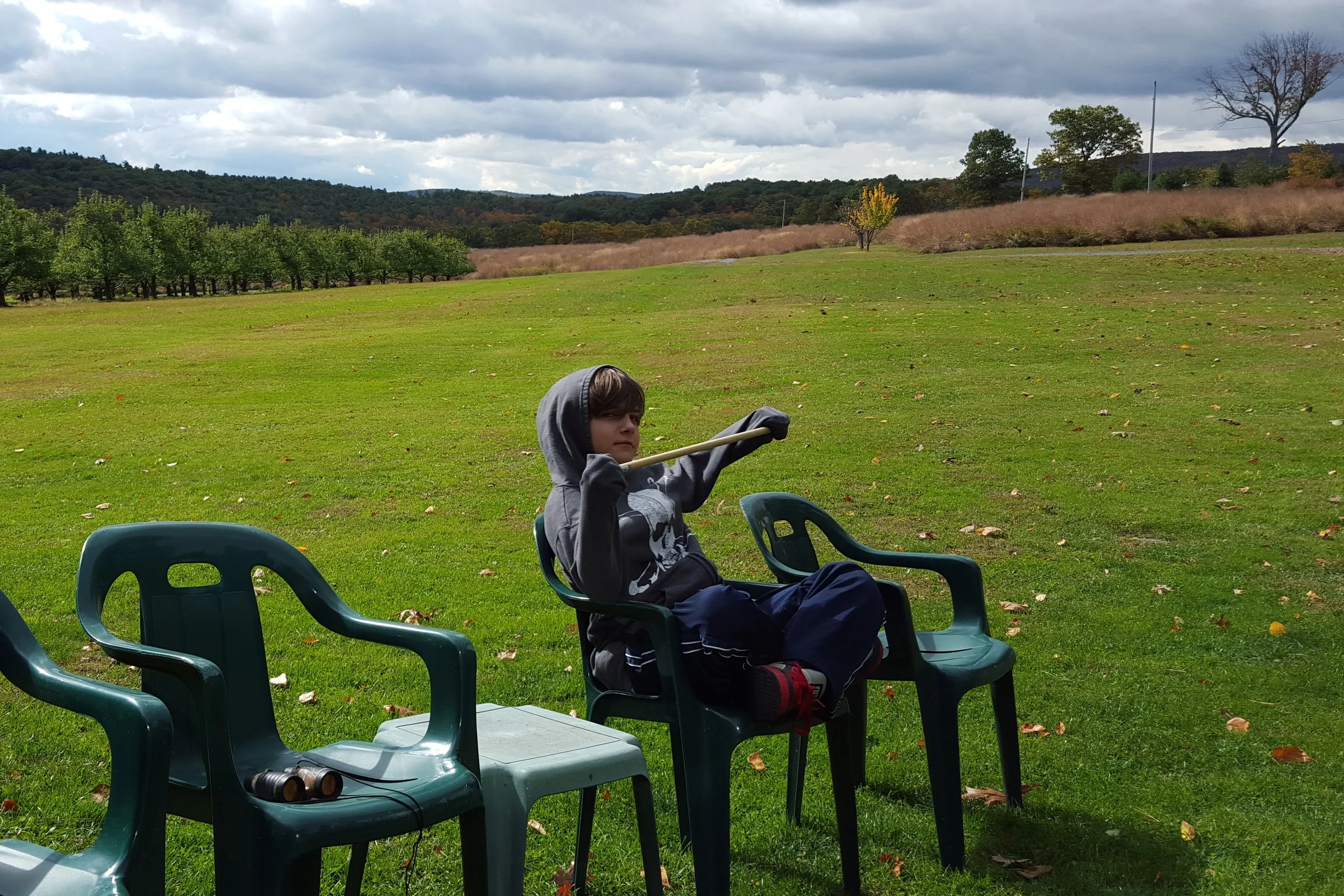 As luck would have it, in the next 45 minutes, the bird only popped up once and I wasn't ready for it with the camera. That's ok though - I'll take the second look it provided. We got our shot. I added a new bird to the year list and closed in on my 319-species record from last year. And Nate got his lifer. The salamanders were waiting for us on the ridge 15 minutes west, and we had to get moving. ...Not before picking a few of the Siefkens' delicious Fuji apples from their orchard, per Ralph's request.